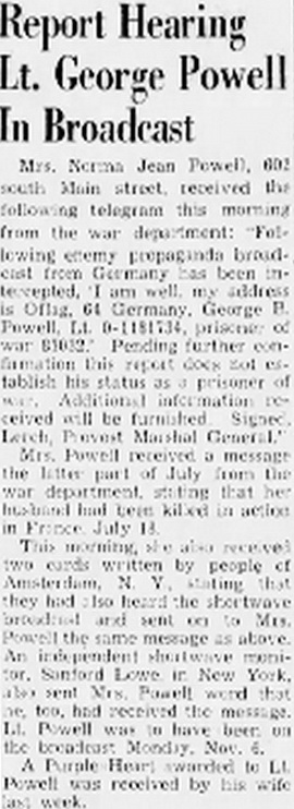prisoner of war in Germany. Lt. Powell broadcast over a short wave radio set