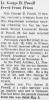 Lt. Powell, son of Mr. and Mrs. George II. Powell, this city, was a