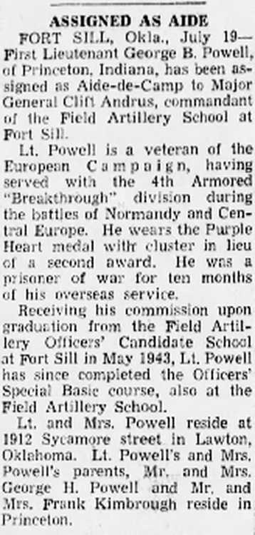 Needles, Calif., and Camp Bowie, Tex. Lt. Powell, a graduate of the