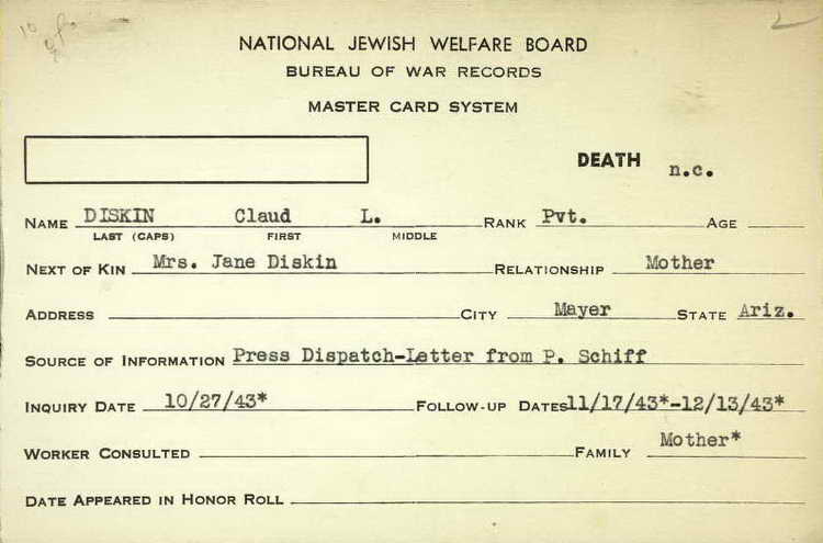 Clarence [sic] Diskin, 508th Parachute Infantry (home address unknown)