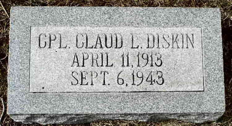 marker for Cpl Claud L. Diskin in the Mountain View Cemetery, Prescott