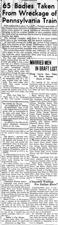 PHILADELPHIA, Sept 7 [1943] -- [AP] -- Twisted wreckage of the