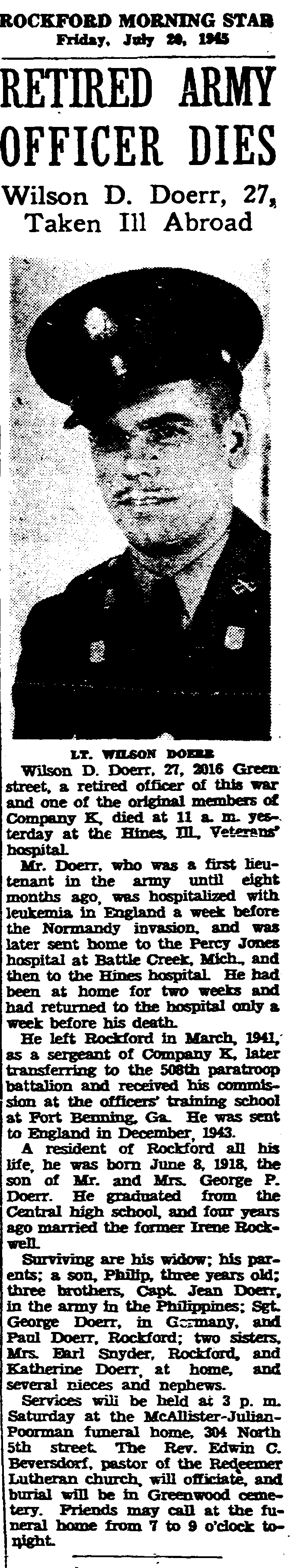 Doerr in Germany, and Paul Doerr in Rockford; two sisters, Mrs.. Earl