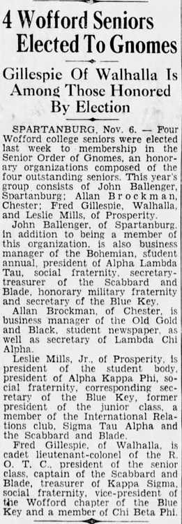 Chester; Fred Gillespie, Walhalla, and Leslie Mills, of Prosperity.