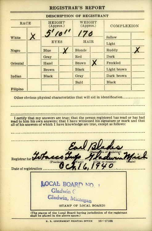 Tobacco Township ((Gladwin county), MI on 6 October 1940.