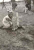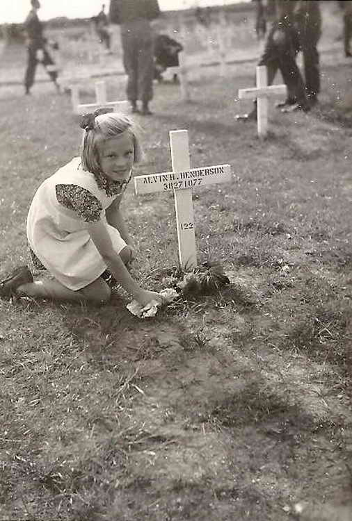 a young Dutch girl places flowers on Alvin's grave