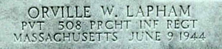 Pvt Lapham was killed in action on June 9, 1944 and was awarded the Purple Heart
