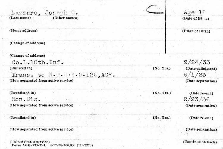 1933 and served in Company L, 10th Infantry. Honorably