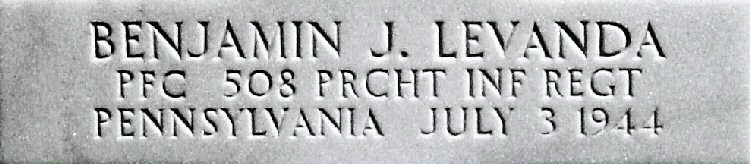 Pfc Levanda was killed in action on July 3, 1944 and was awarded the Purple Heart