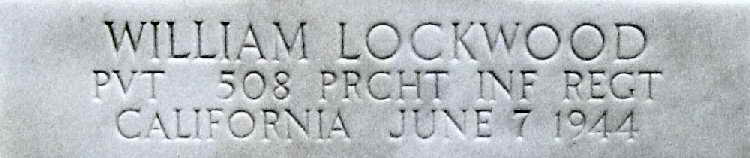 Grave marker for Pvt William Lockwood at Plot F Row 21 Grave 15 in the Normandy American Cemetery and Memorial in Colleville-sur-Mer, France