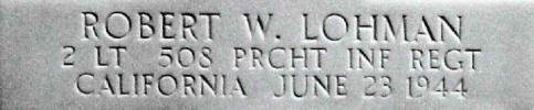 Lt. Lohman was killed in action on June 23, 1944 and was awarded the Purple Heart