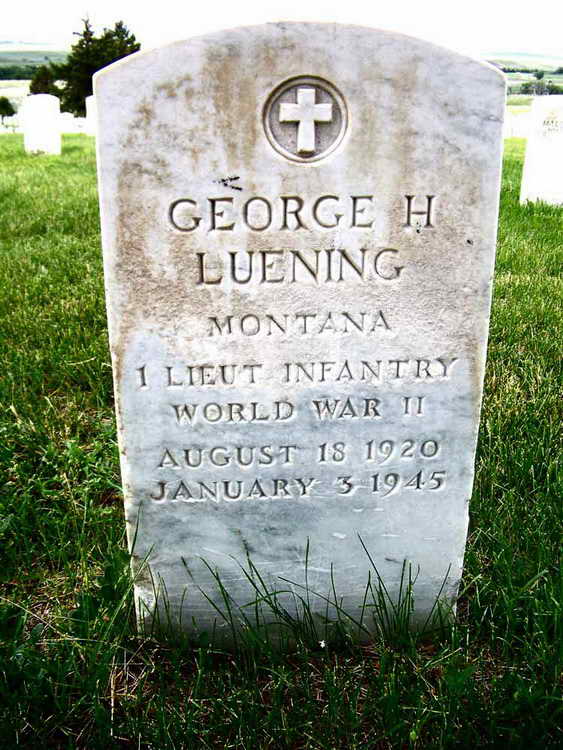 Interment Record and grave marker for 1/Lt George H. Luening at Section D Site 5 of the Custer