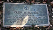 Grave marker for Pfc Olen W. Majers. Section D, Lot 258 in the Oakwood Memorial Park cemetery, Chatsworth, Los Angeles County, California.