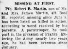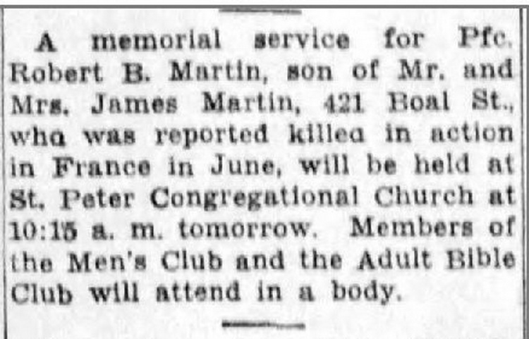 son of Mr. and Mrs. James Martin, 421 Boal St., who was reported killed
