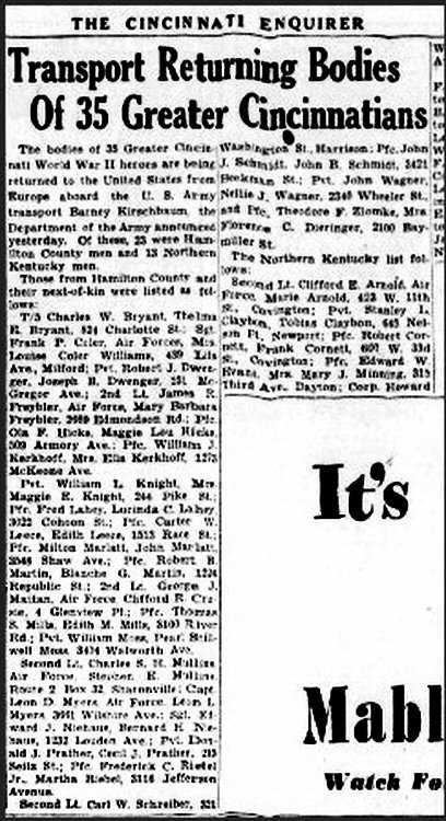 [Cincinnati Enquirer, Cincinnati, OH, Saturday, August 5, 1944, Page 6] |