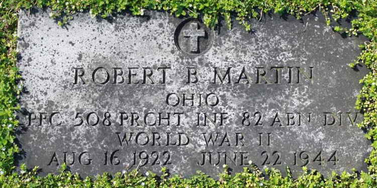 Application for a grave marker and resulting stone for Pfc Robert B. Martin in Section 24 Grave 1479 of the Vine
