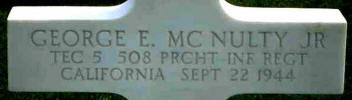 Tec/5 McNulty was captured on September 20, 1944 and died of wounds two days later. He was awarded the Purple Heart