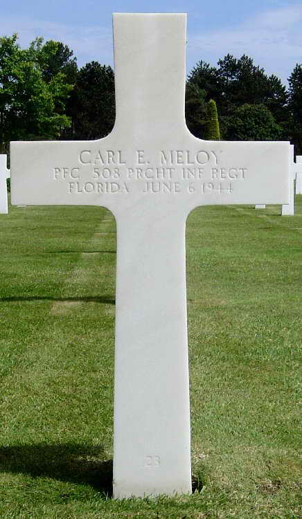 Grave marker for Pfc Carl E. Meloy at