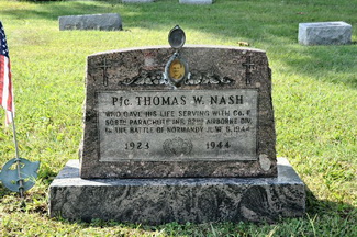 Grave marker for Pfc Thomas W. Nash in Oak