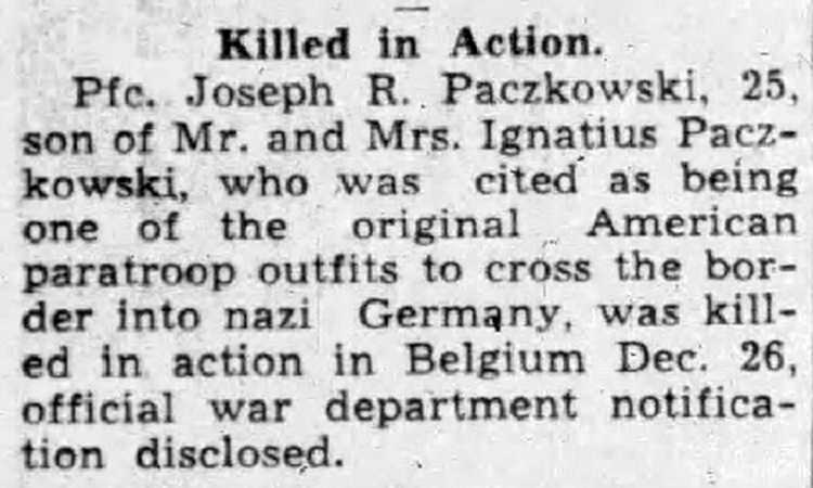 Pfc. Joseph R. . Paczkowski, 25, son of Mr. and