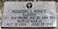 PRIVATE MARION L PENCE WAS KILLED IN ACTION ON FOURTEEN JUNE IN FRANCE