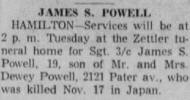 HAMILTON, Nov. 21. --- S3/c James S. Powell,