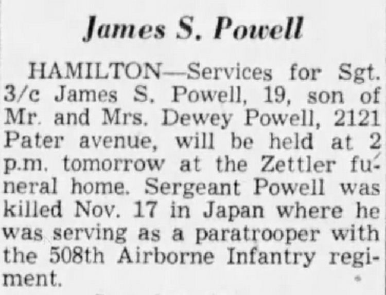 HAMILTON --- Services for Sgt 3/c James S. Powell, 19, son