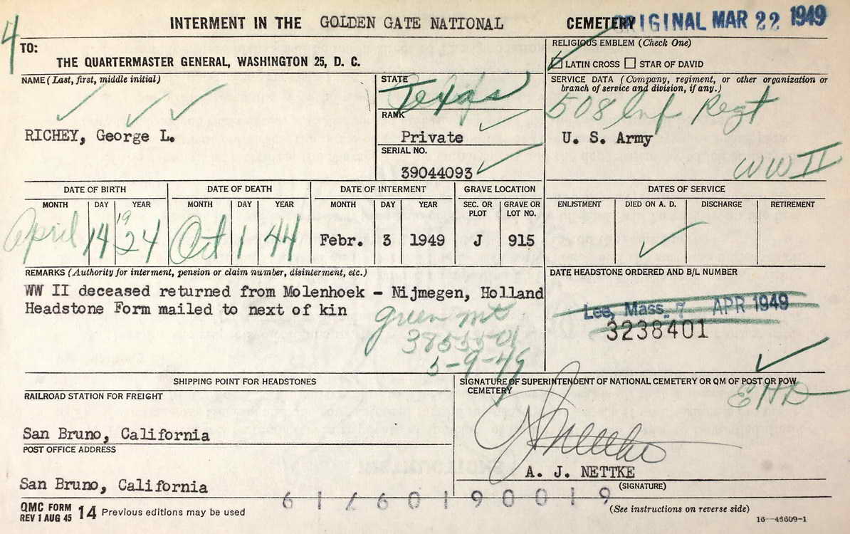 Last rites will be held Thursday for Pvt. George L,. Richey, 20. of Oakland, who
