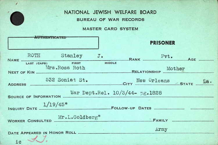 Roth was listed missing in action as of 6 June 1944 and was later