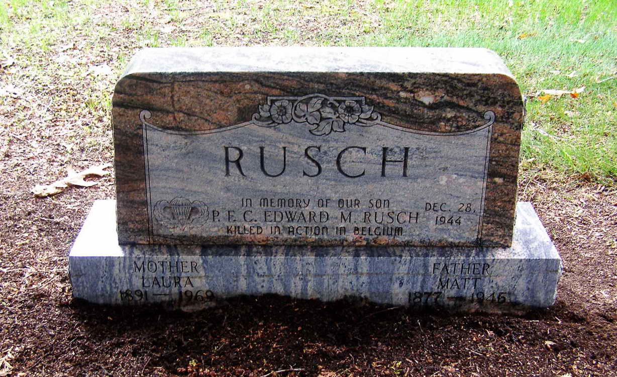 Memorial stone for Pfc Edward M. Rusch in the Fort Howard Memorial Park,