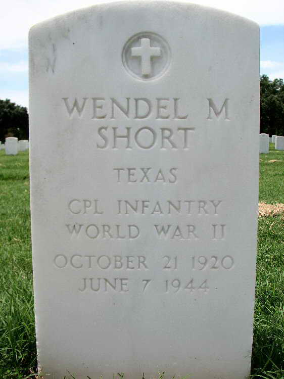 Grave marker for Cpl Wendel M. Short at Section N, Site 94 in Fort Sam Houston National Cemetery, San Antonio, Bexar County, Texas.