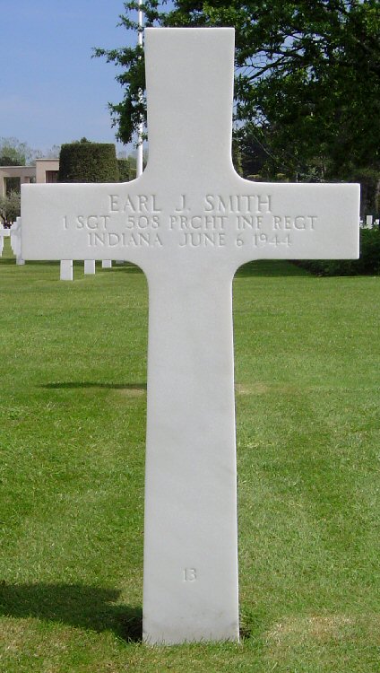 Grave marker for 1st Sgt. Earl J. Smith at