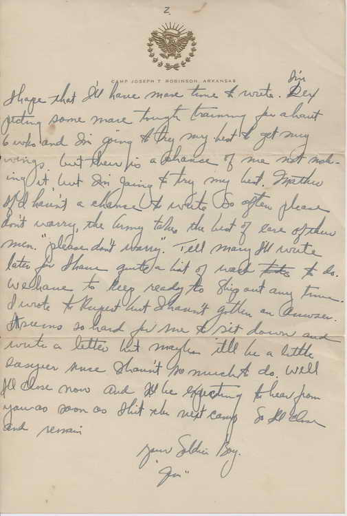 I hope that I’ll have more time to write. I’m expecting some more tough training for about 6 wks and I’m going to try my best to get my wings. but their is a chance of me not making it, but I’m going to try my best. Mother so I haven’t a chance to write so often please don’t worry, the Army takes the best of care of their men. “please don’t worry”. Tell Mary I’ll write later for I have quite a list of work to do. We have to keep ready to ship out any time. I wrote to Rupert but I haven’t gotten an answer. It seems so hard for me to sit down and write a letter but maybe It’ll be a little