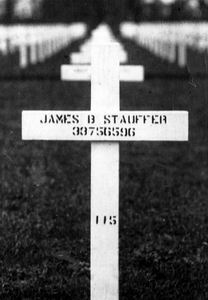 marker for James B. Stauffer, Plot I, Row 6, Grave 115 in Blosville, France.