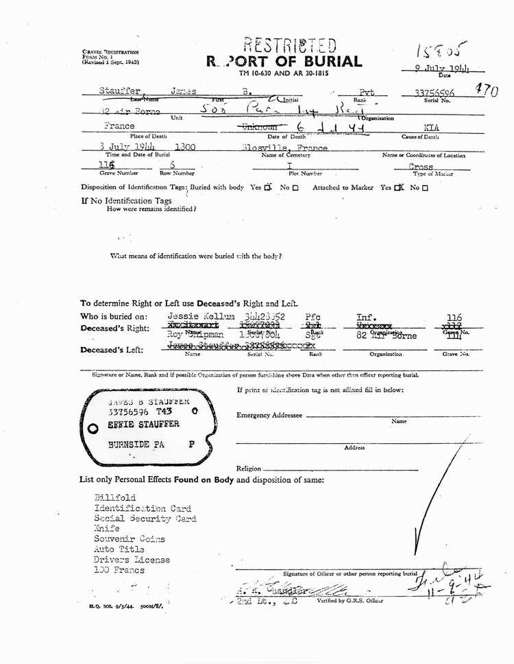 Report of Burial (at let) the grave of Pvt. Roy Chipman, also of Company