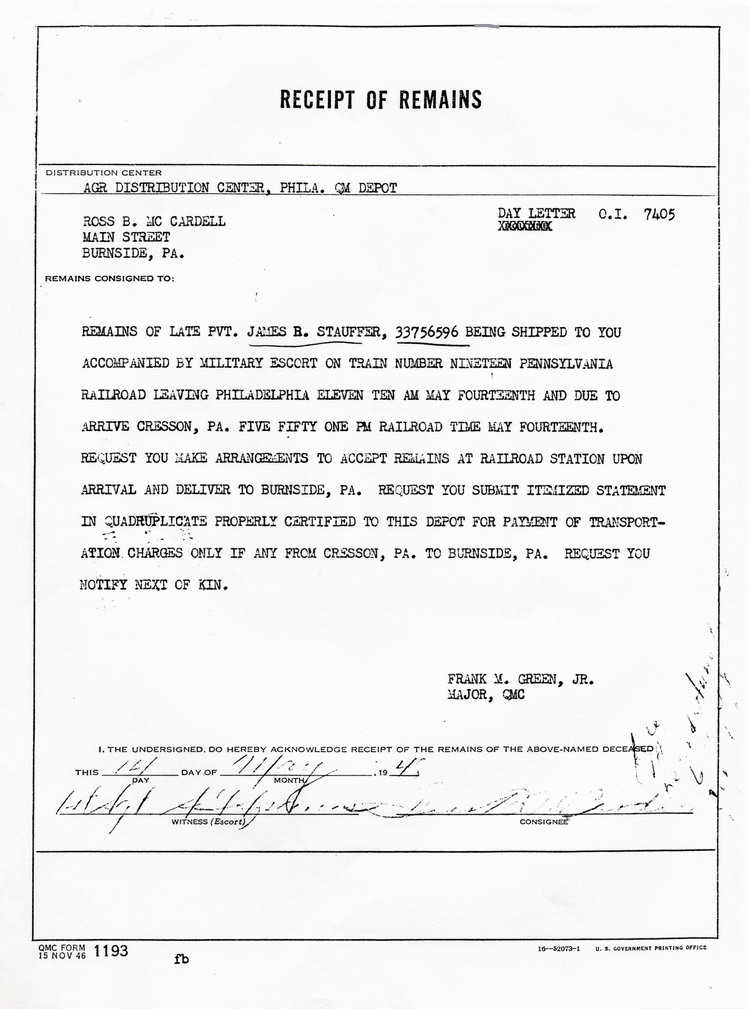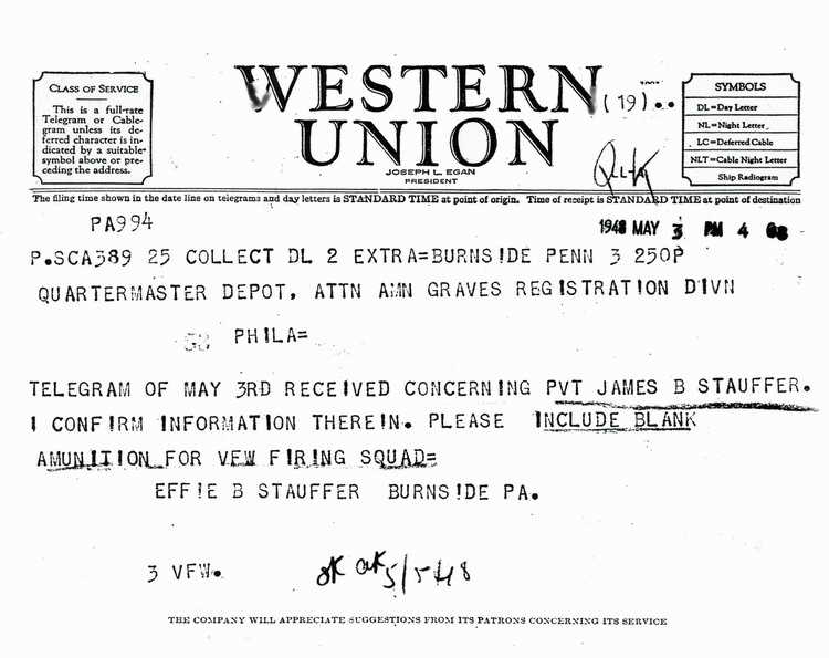 On May 3, 1948. Effie Stauffer sent a collect telegram responding to a