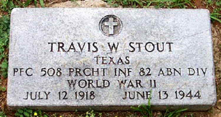 The grave marker attests to the fact that Pfc Stout was KIA on June