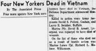 Killed in action were Army Sergeants David S. Pellew, Goshen, and