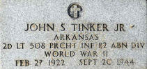 Grave marker for 2nd Lt. John S. Tinker in the Oaklawn Cemetery, Jonesboro