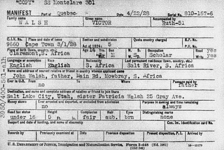 in South Africa ca. 1914 and immigrated to the United States in 1928