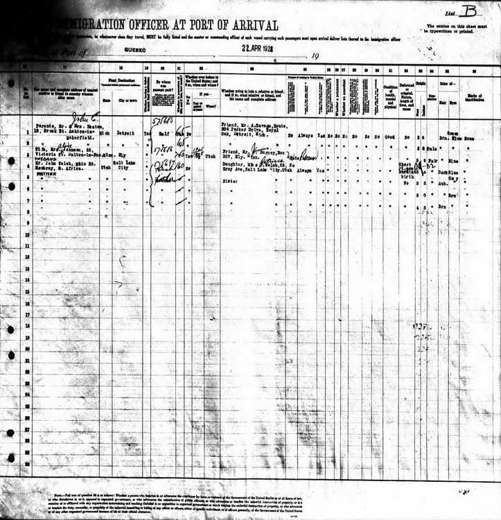 England the foursome arrived in Quebec on 22 April 1928. The family