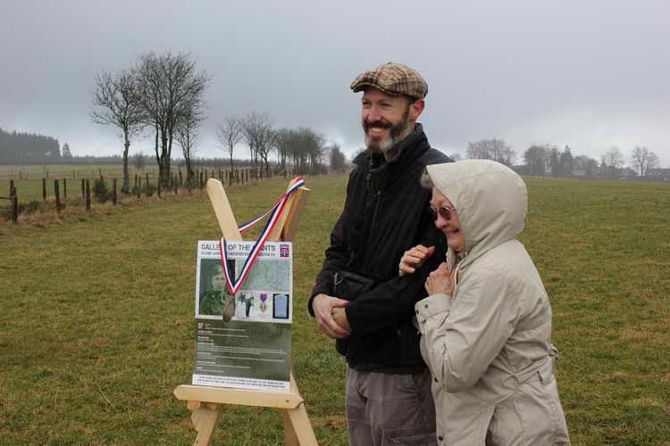 On a windy, cold January 30, but many years after Glenn made his Final Mile on his Odyssey for Freedom to Lanzerath, his daughter Judy, her son and members of his family gathered for a ceremony in the field, which since that day is known locally as Glenn’s Field. Glenn’s Field being close to the Regimental monument for Glenn and his comrades. Since that January 1945 day, Lanzerath has been a free, a liberated and peaceful community. Because there were men like Glenn and his comrades who stood up for freedom, peace and liberty.