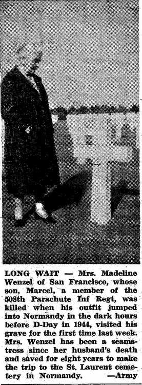 WAIT --- Mrs. Madeline Wenzel of San Francisco, whose son, Marcel, a