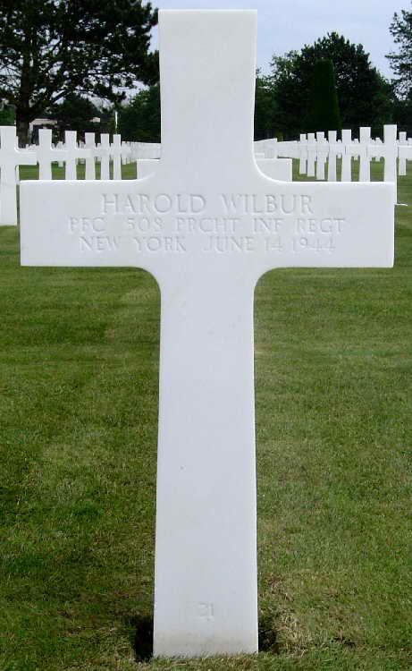 Grave marker for Pfc Harold Wilbur at