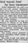 GRUNDY CENTER - Second Lt. William Wilson, 23, of Grundy Center, who was injured a week ago Monday in a scrimmage at Ft. Benning, Ga., where he was stationed, died at 4:20 p. m. Sunday in the hospital on the base of an internal hemorrhage of the brain.