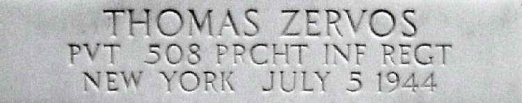 Pvt Zervos was killed in action on July 5, 1944 and was awarded the Purple Heart.