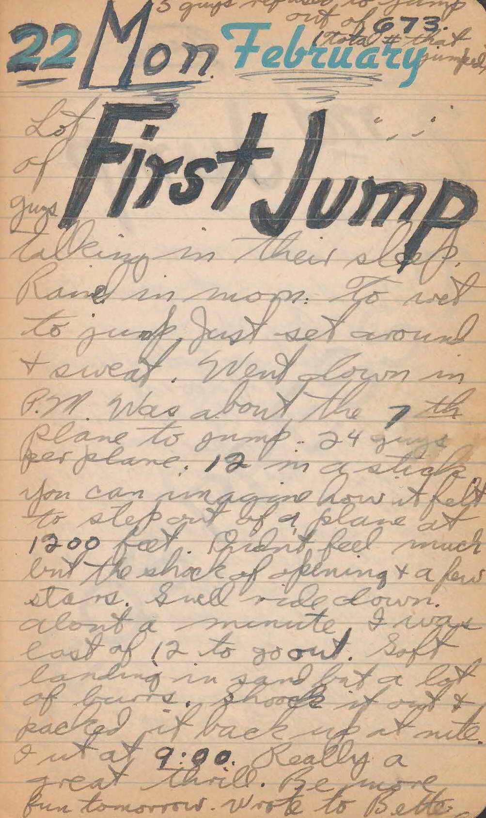 22 February [1943] First Jump