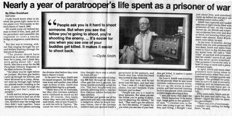 "Our plane was hit right before we jumped. Machine gun bullets came